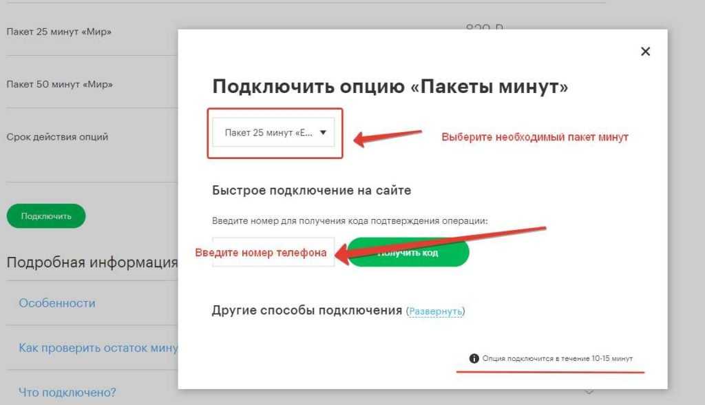 Опцию 25/50 минут Мир также возможно подключить в Личном кабинете.Данные минуты можно потратить на все звонки, исключение лишь составляют исходящие вызовы за границу страны и не в РФ.