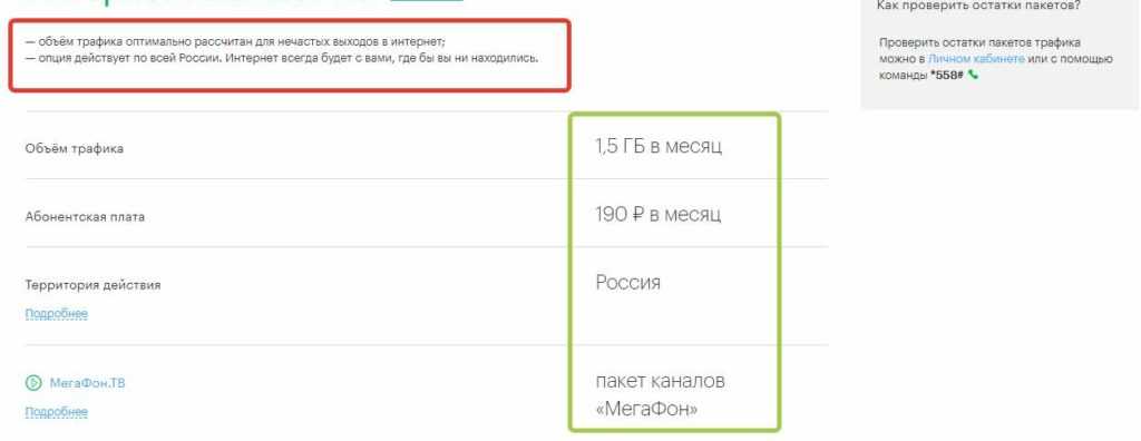 Минимальный объем трафика, включенный в это предложение, позволяет абоненту нечасто пользоваться интернетом. Количество трафика составляет 1,5 Гб в месяц на максимальной скорости. Стоимость пакета наряду с этим составляет 190 руб.