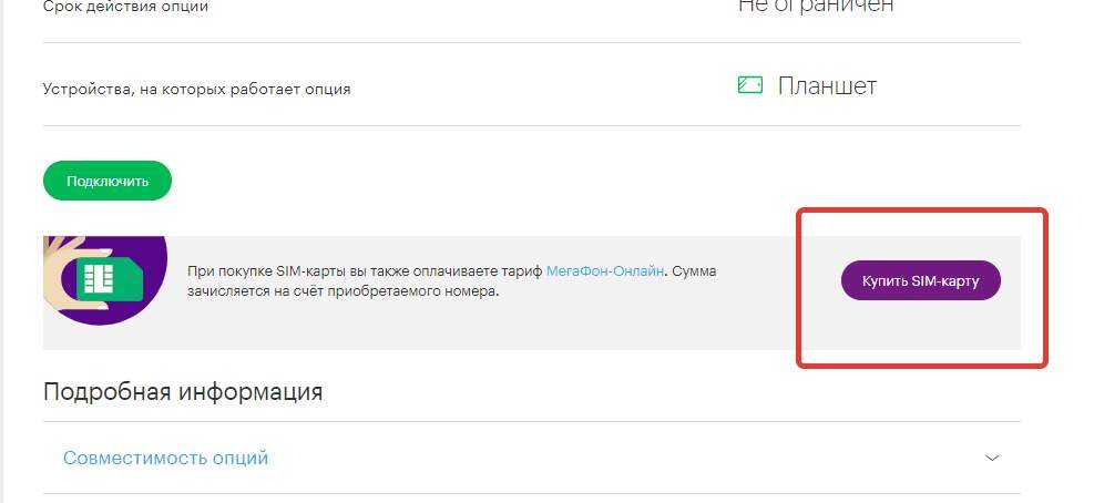 Шаг 1. Под описанием тарифа найдите кнопку «Купить сим-карту».