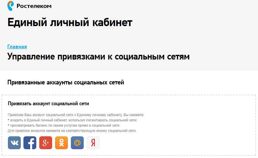 На открывшейся странице ознакомьтесь с информацией и затем выберите интересующую социальную сеть, к которой будет привязан аккаунт Ростелекома.