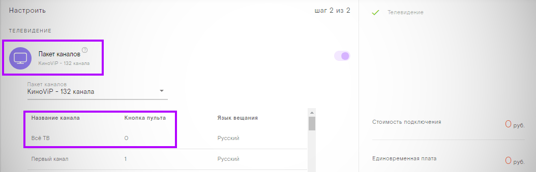 - Подключенные каналы, входящие в пакет, будут работать постоянно.