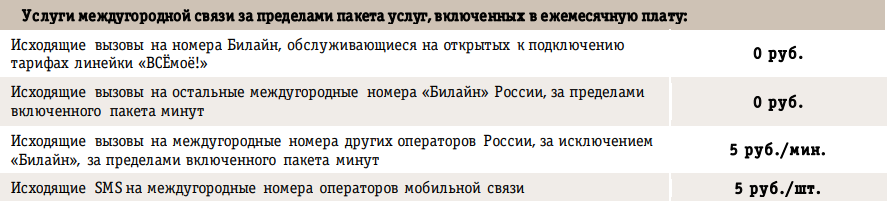 Звонки и сообщения в международном и национальном формате в тарифе «ВсёМоё 3» от Билайна
