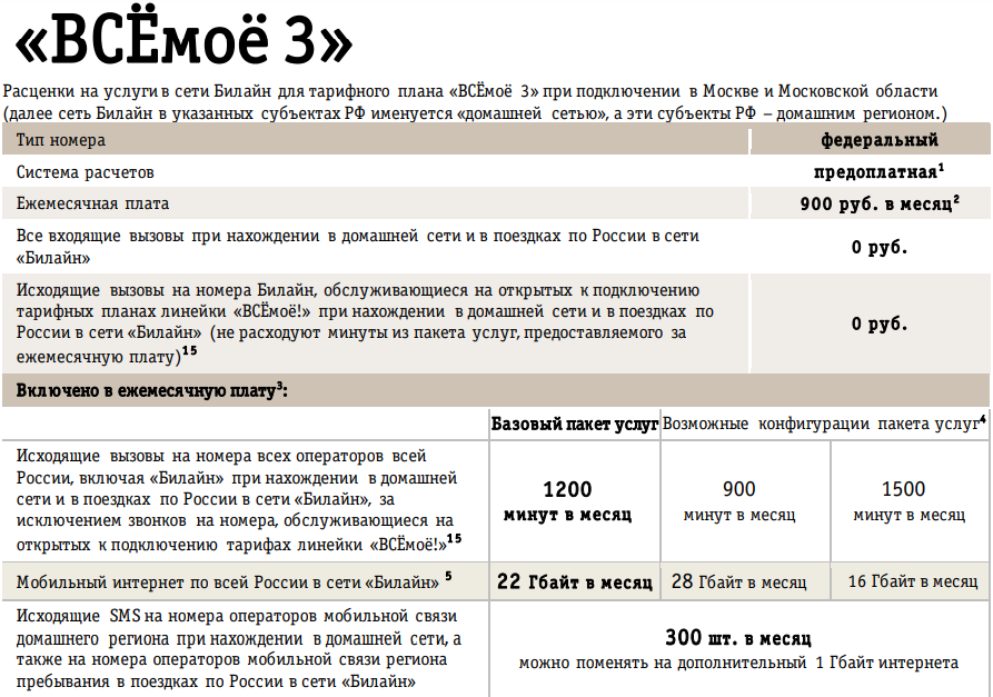 Подробное описание и условия тарифа Билайн «Ноль сомнений»