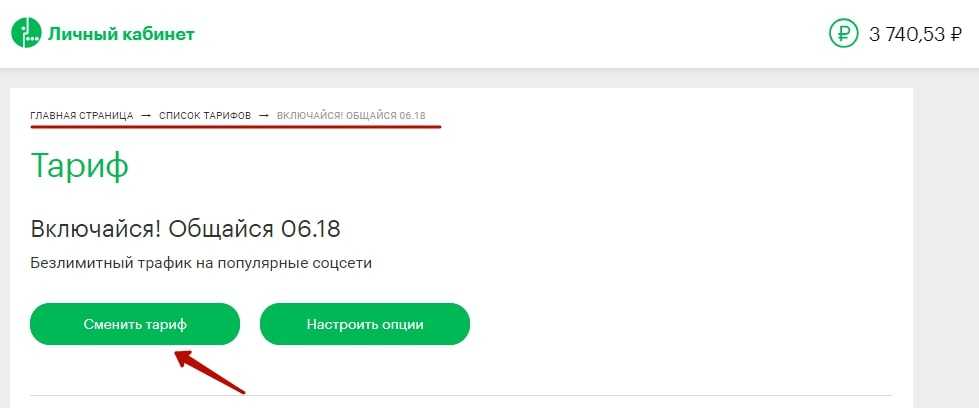 - Перейти к изменению тарифа, выбрав соответствующий пункт (первую надпись после описания).