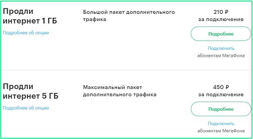 После того, как весь пакетный лимит будет исчерпан, можно купить дополнительный пакет интернета на 500 Мб (на 30 дней) за 50 рублей.