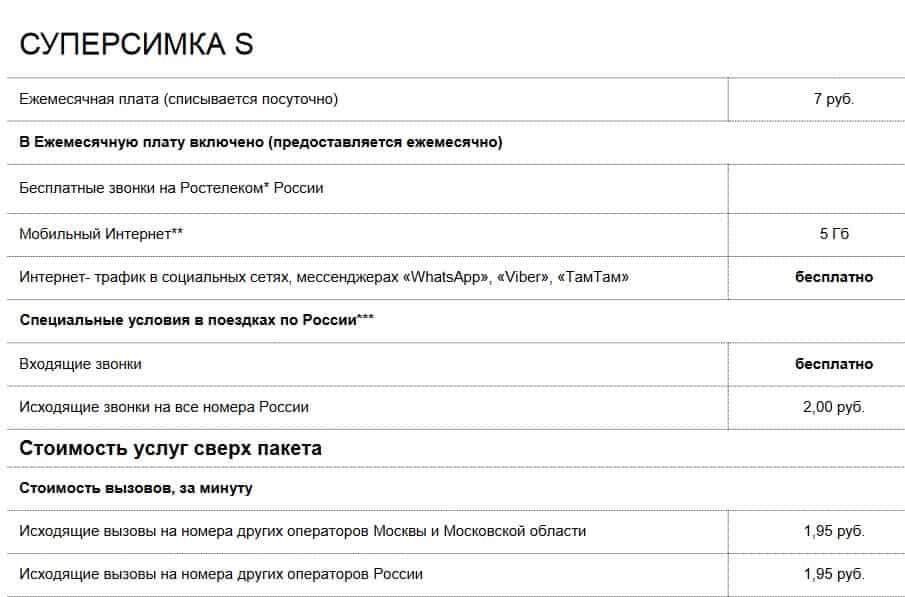 Стоимость может отличаться. Помните – в каждом регионе действуют свои правила на мобильную связь. Уточняйте эту информацию у сотрудников компании, связавшись с ними по горячей линии или в ближайшем отделении Ростелекома. В Москве и Московской области условия действуют следующие: