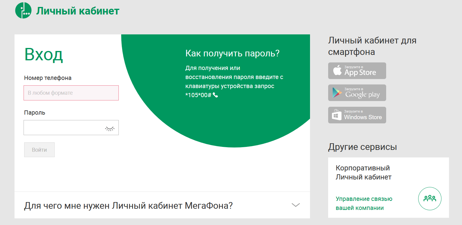 Личный кабинет мегафон