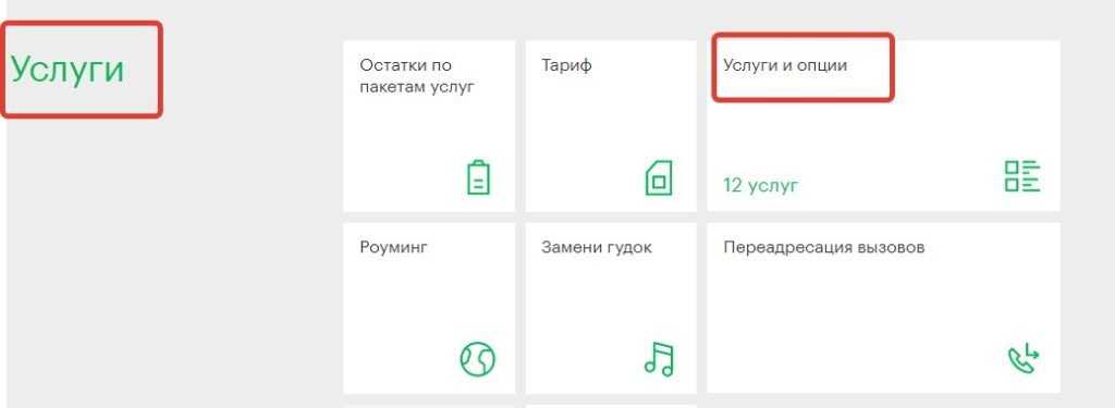 - Все опции, которые подключены к номеру можно проверить в личном кабинете зайдя на одноименную вкладку. Найти нужную опцию, справа будет указан её статус.